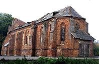 Die ehemalige Wallfahrtskirche, der Heiligen Katharina geweiht, liegt auf einem Hügel oberhalb des Pregels. Bis in die neunziger Jahre wurde sie von der örtlichen Kolchose als Lagerhalle genutzt. Okt. 1995 CD03015