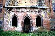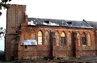 Die ehemalige Wallfahrtskirche, der Heiligen Katharina geweiht, liegt auf einem Hügel oberhalb des Pregels. Bis in die neunziger Jahre wurde sie von der örtlichen Kolchose als Lagerhalle genutzt. Okt. 1995 CD03016