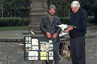 Juli 2005. Kunsthandwerkerin vor dem Dom bei ihrer Arbeit