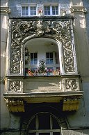 Balkon in gut erhaltener Häuserzeile in Marienburg. Juni 2000 CD14033