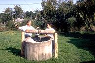 Familie Kijaschko am Wasserbrunnen.