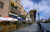 / Gdansk, Altbau, Fluss, Krantor / Zuraw, Mottlau / Motlawa, Touristen