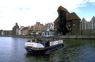 / Gdansk, Altbau, Fluss, Krantor / Zuraw, Mottlau / Motlawa, Schiff,