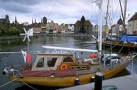 / Gdansk, Altbau, Fluss, Krantor / Zuraw, Mottlau / Motlawa, Segelboot